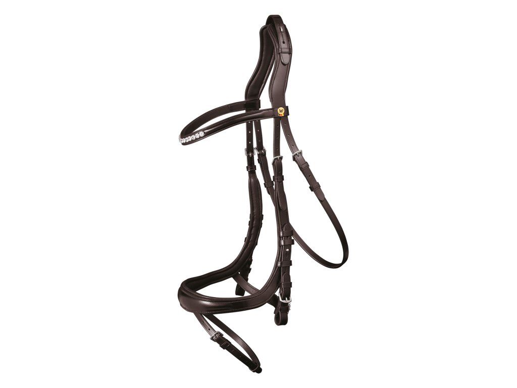 Kvalitní uzdečka s elegantním střihem. Uzdečka má kombinovaný anglický nánosník a anatomicky tvarovaný nátylník, který zajišťuje volnost uší.