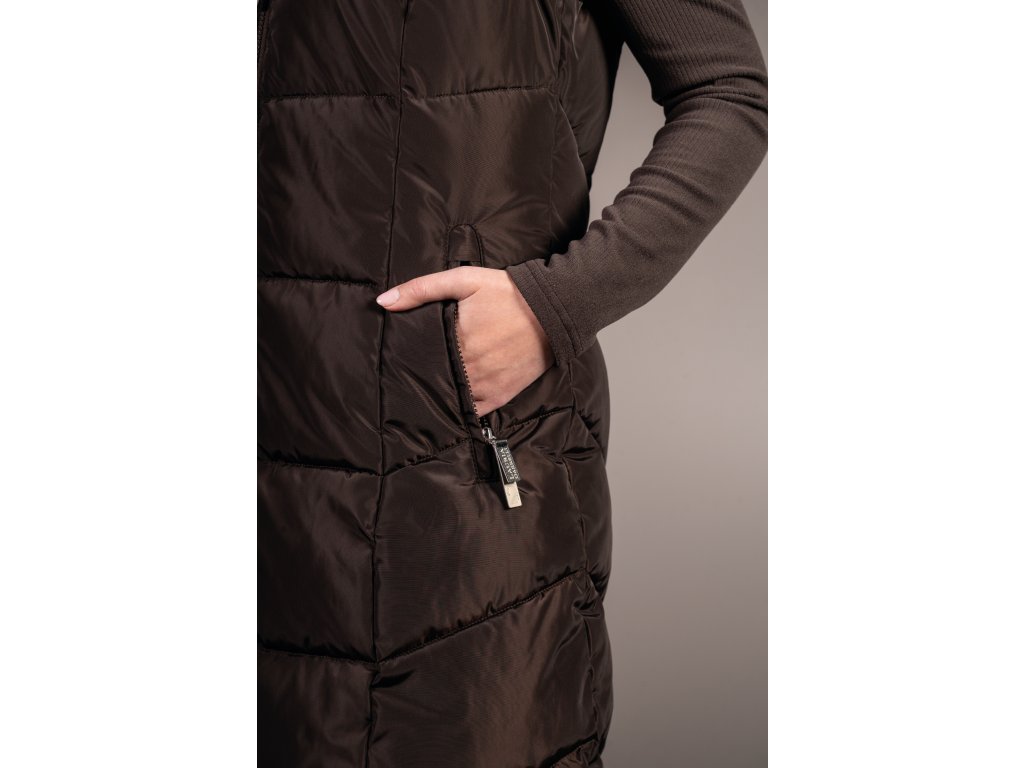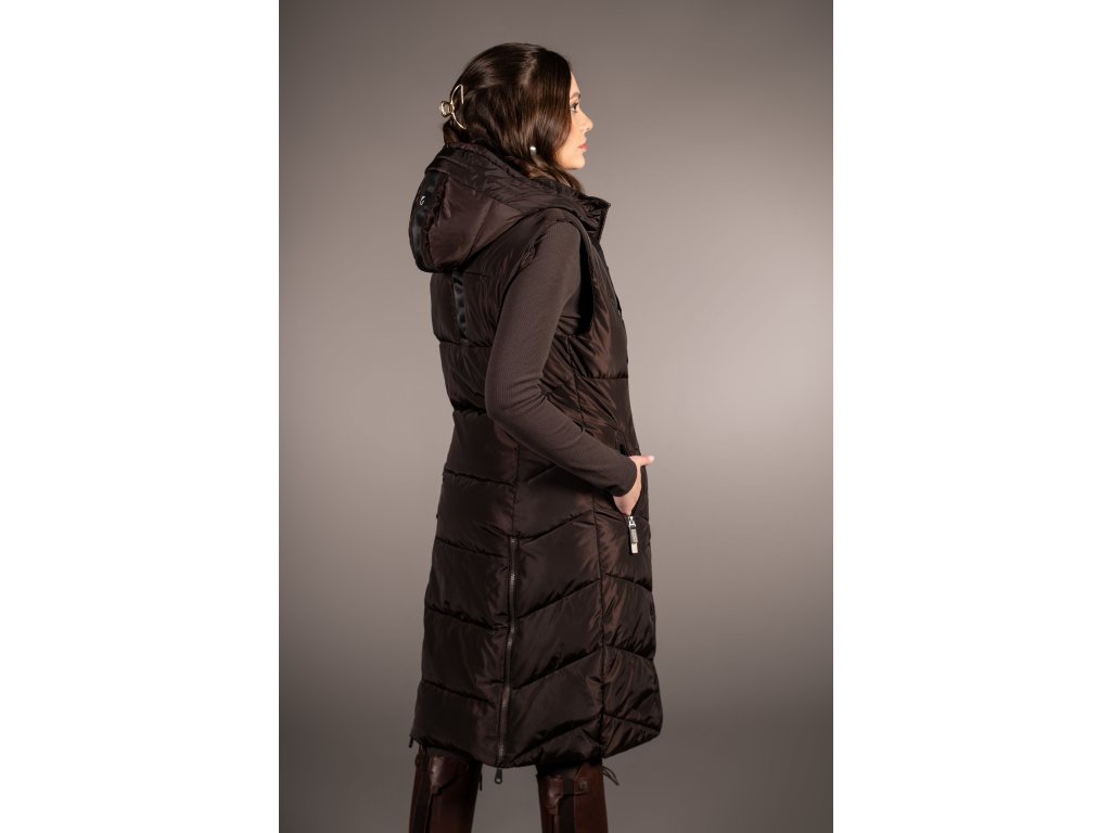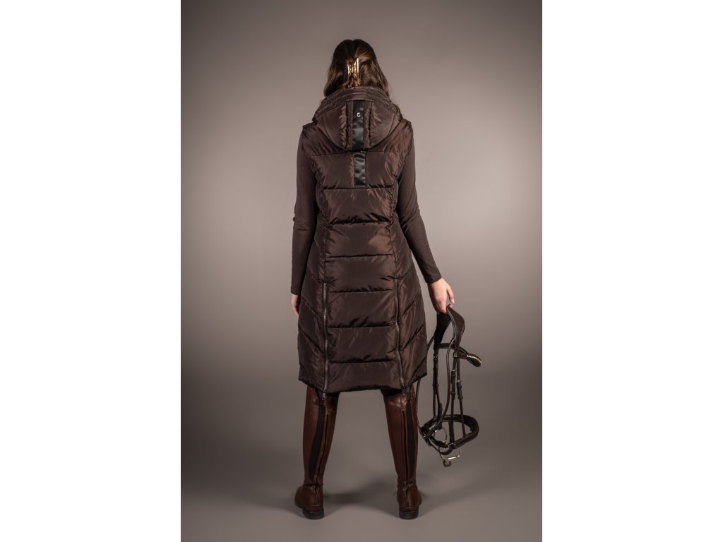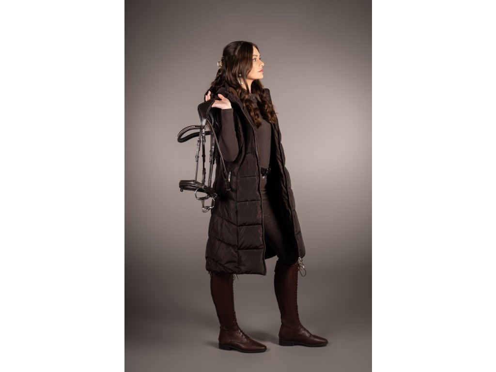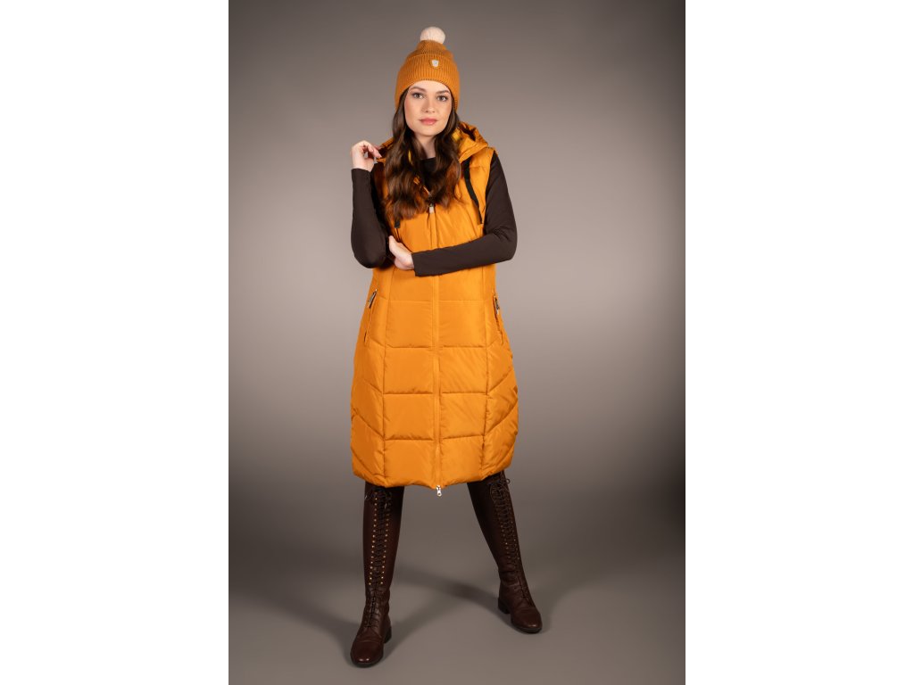 Velmi teplá, ale lehká, dlouhá, prošívaná vesta s jezdeckými rozparky. Vesta Arezzo je s voděodolnou úpravou, má dvoucestný zip a dlouhý rozparek s reflexním proužkem (na fotografiích je původní verze s dvěma rozparky, nová verze má rozparek jeden uprostřed). Kapuce je velká stejné jako dvě přední kapsy na zip. propracované moderní detaily a funkčnost předurčují vestu nejen do sedla ale i na běžné nošení.