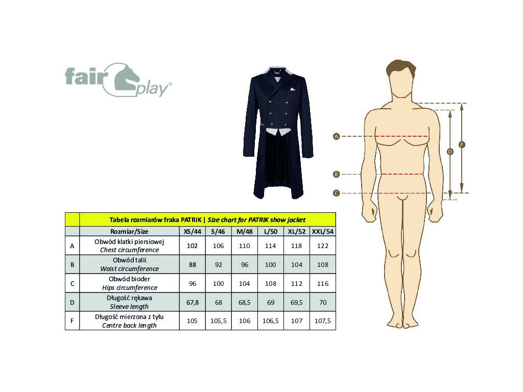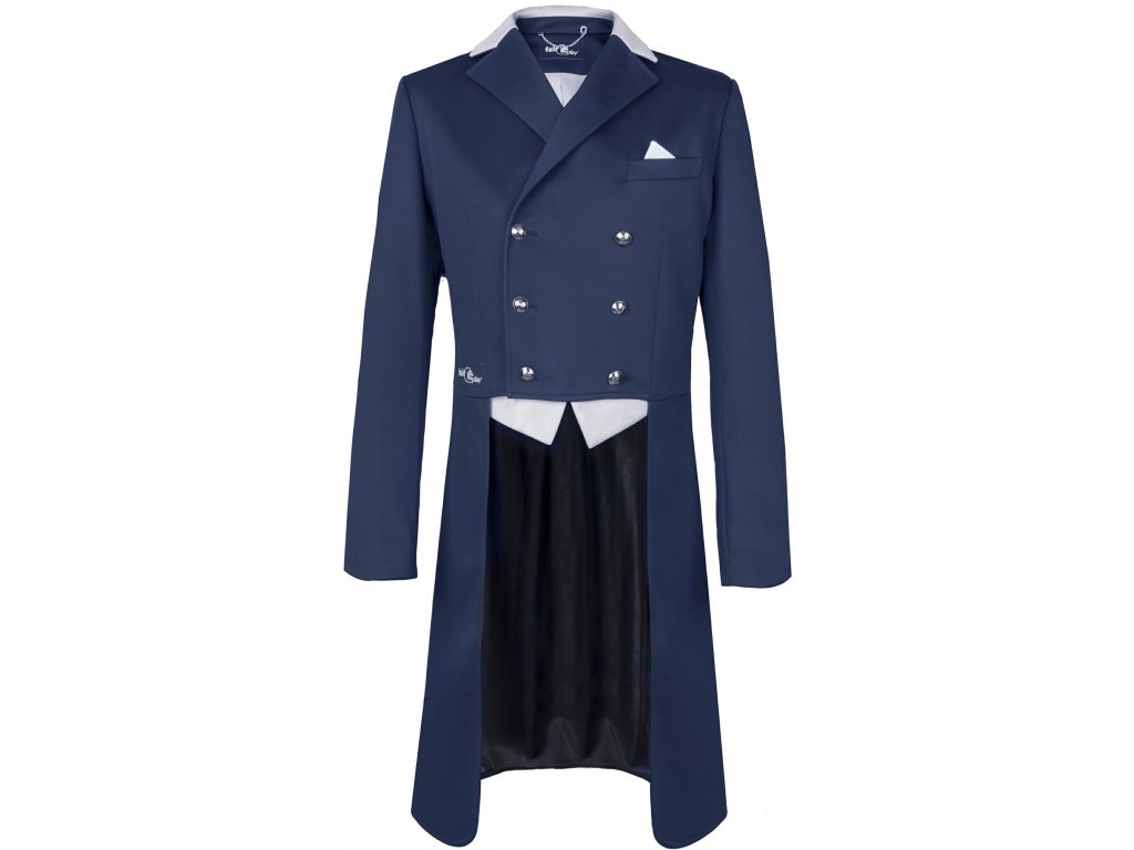Elegantní luxusní pánský jezdecký frak. Dodáván se sadou vyměnitelných klop - černé nebo béžové. Větrací otvory v podpaží.
