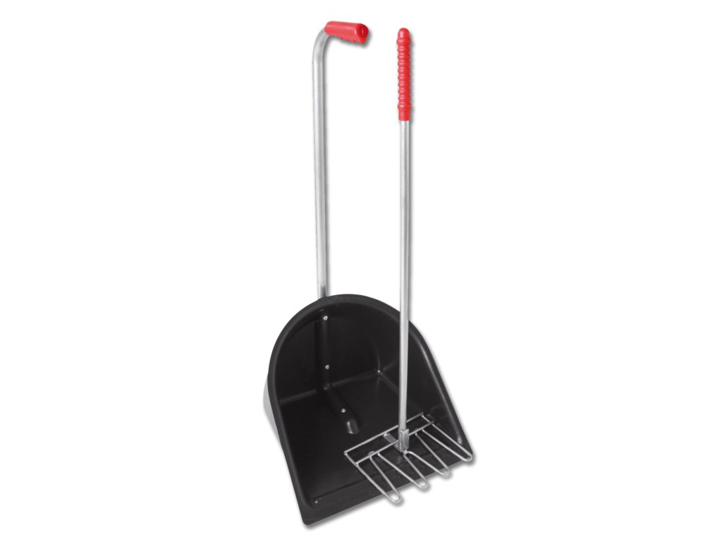 Místovací souprava - lopatka + hrabičky. Slouží k rychlému úklidu jízdárny, vozíku nebo boxu.