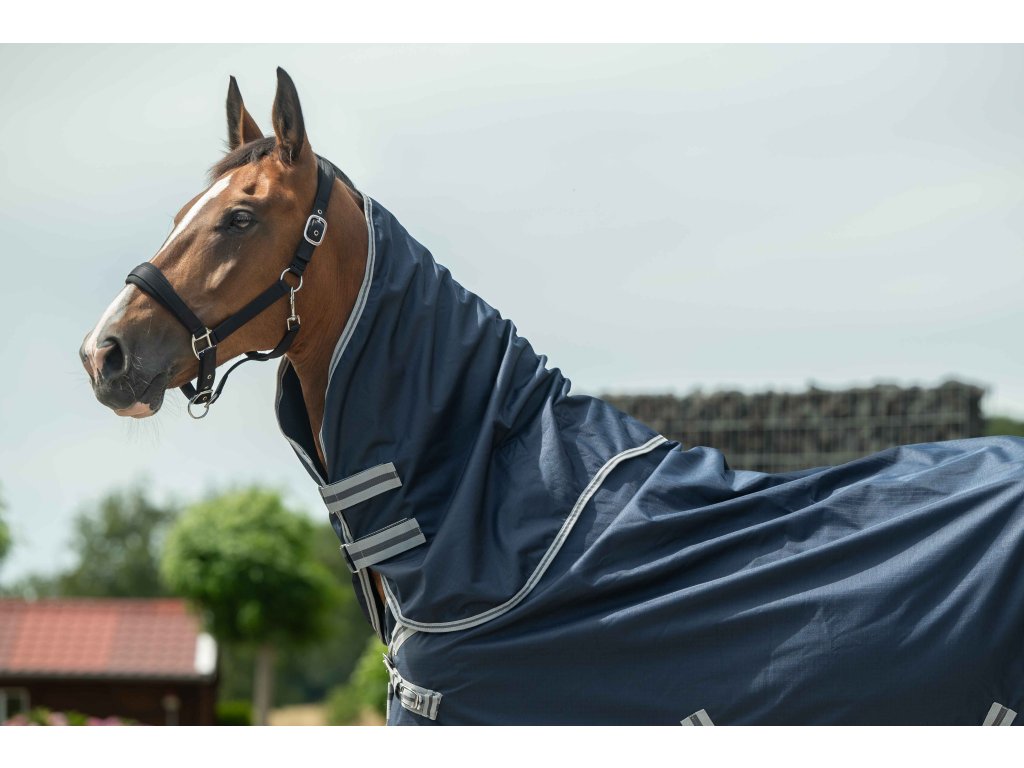 Nová, výběhová deka s odnímatelným krčním dílem a teplotním rozmezím od -10°C do 20°C.