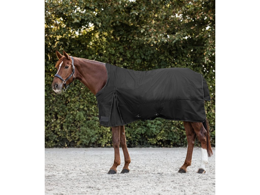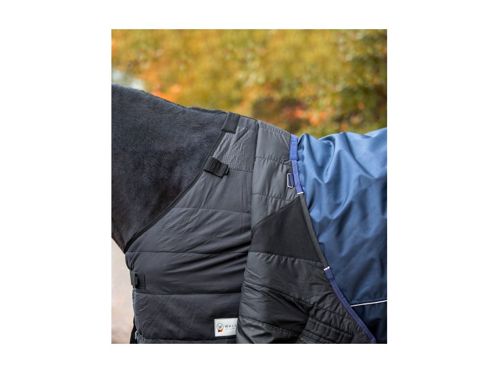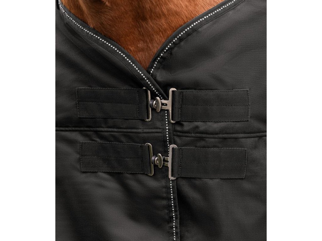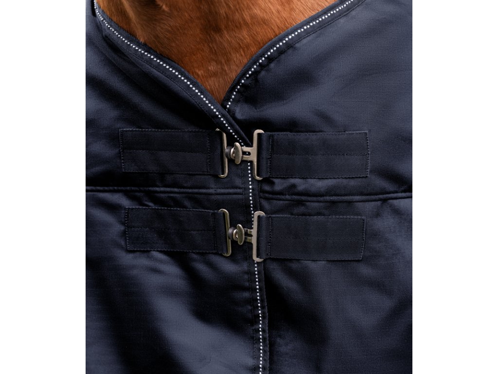 Výběhová nepromokavá, zateplená deka s prodloužením nad kohoutek je podšitá látkou Stay-Clean. Zvýšený střih je vhodný i pro koně uší v plecích - nezklouzává za kohoutek. Je určená pro velmi chladné a deštivé dny ve výběhu. Zateplení deky 200 g vhodné do výběhu zejména pro stříhané koně i v zimním období. Zapínání vpředu na plecích na dvojité T-přezky je podšité suchým zipem pro snazší zapínání. Zapínání na T- přezky je velmi rychlé i se zkřehlými prsty :-)Křížové zapínání pod břichem a pásky pod zadní nohy jsou samozřejmostí. Deka Nordic je lemována reflexními detaily pro zvýšení viditelnosti za šera nebo za tmy.