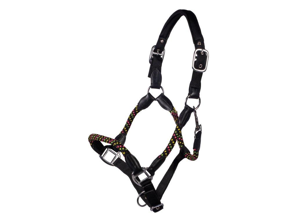 Krásná ohlávka kombinující kulaté lano, kůži a měkké polstrovnání nátylníku. Ohlávka je stavitelná na obou stranách nátylníku a na nánosníku.