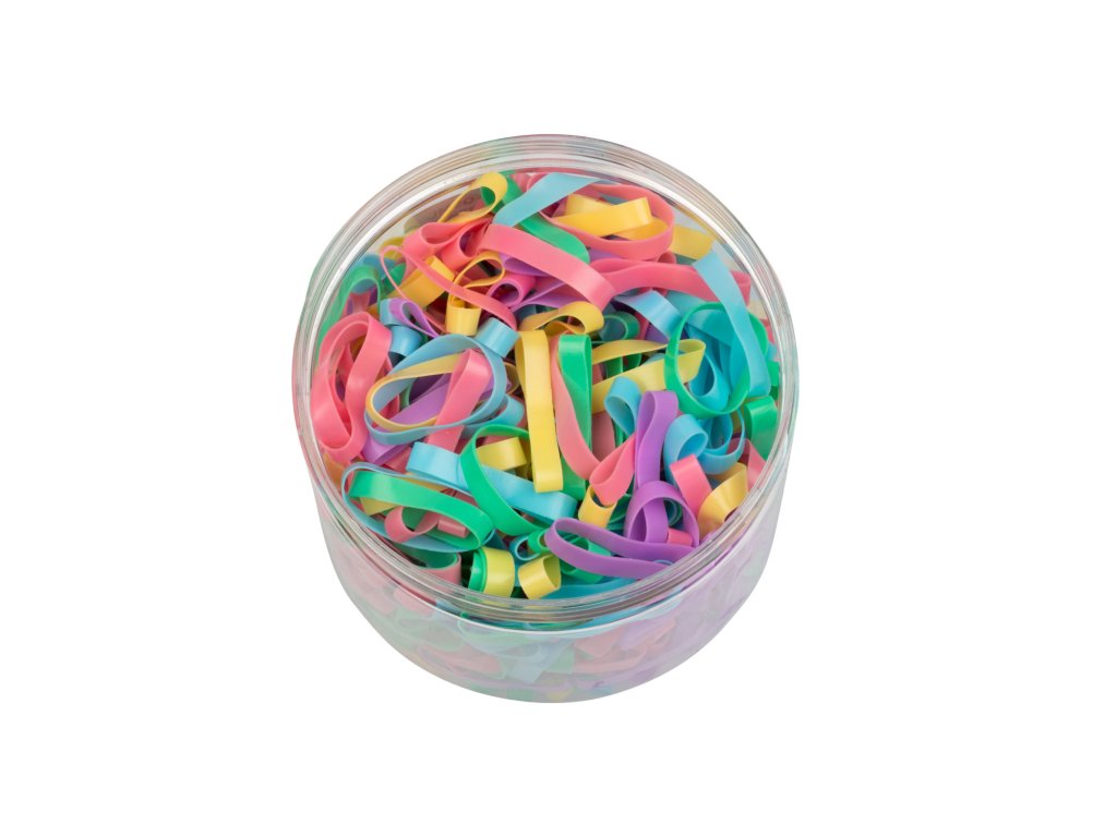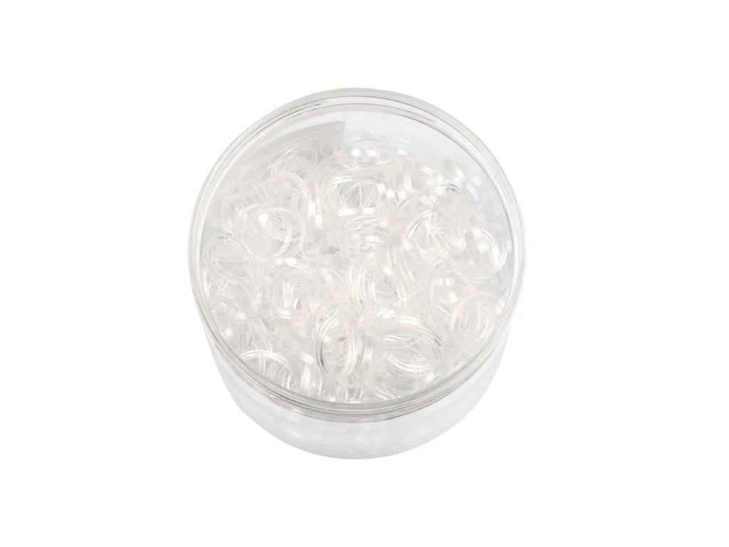 Odolné, velmi pružné silikonové gumičky v praktické krabičce. Obsah krabičky je cca 500 ks gumiček.
