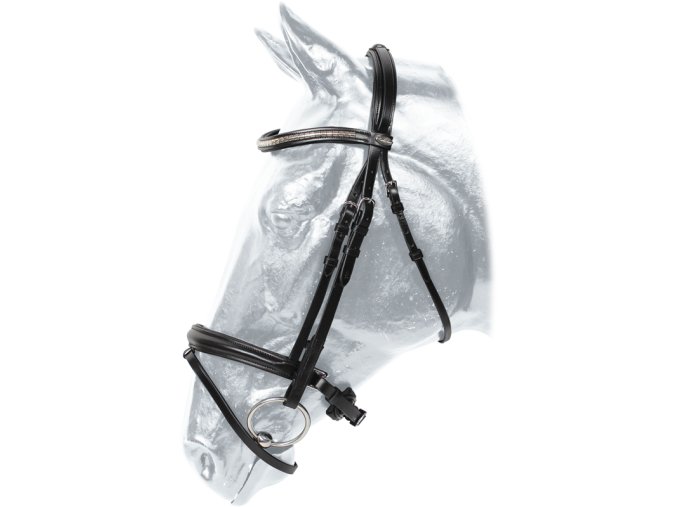 Drezurní uzdečka se švédským nánosníkem vyrobená z kvalitní italské kůže. Podložený nátylník. Tvarovaná čelenka. Otěže s háčky.