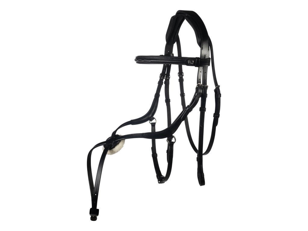 Luxusní uzdečka z prvotřídní, měkké, německé kůže s mexickým nánosníkem. Uzdečka má velmi měkce polstrovaný nátylník a lícnice. Měkčenou podložku najdete i pod přezkou nánosníku (lze sundat). Speciální anatomický tvat lícnic, které přecházejí do nánosníku omezuje utlačování důležitých nervů a cév. Nánosník lze i zcela odepnout a nahradit jiným typem.