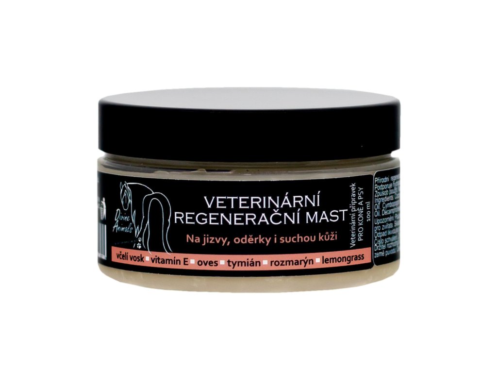 Přírodní regenerační mast napomáhá obnově a ochraně kůže při podráždění, drobných oděrkách či popraskání. Vhodná na jizvy, suchou a podrážděnou kůži. Podporuje hydrataci, pružnost a přirozenou regeneraci kůže. Ideální na citlivou suchou kůži u koní nebo pro péči o psí tlapky.