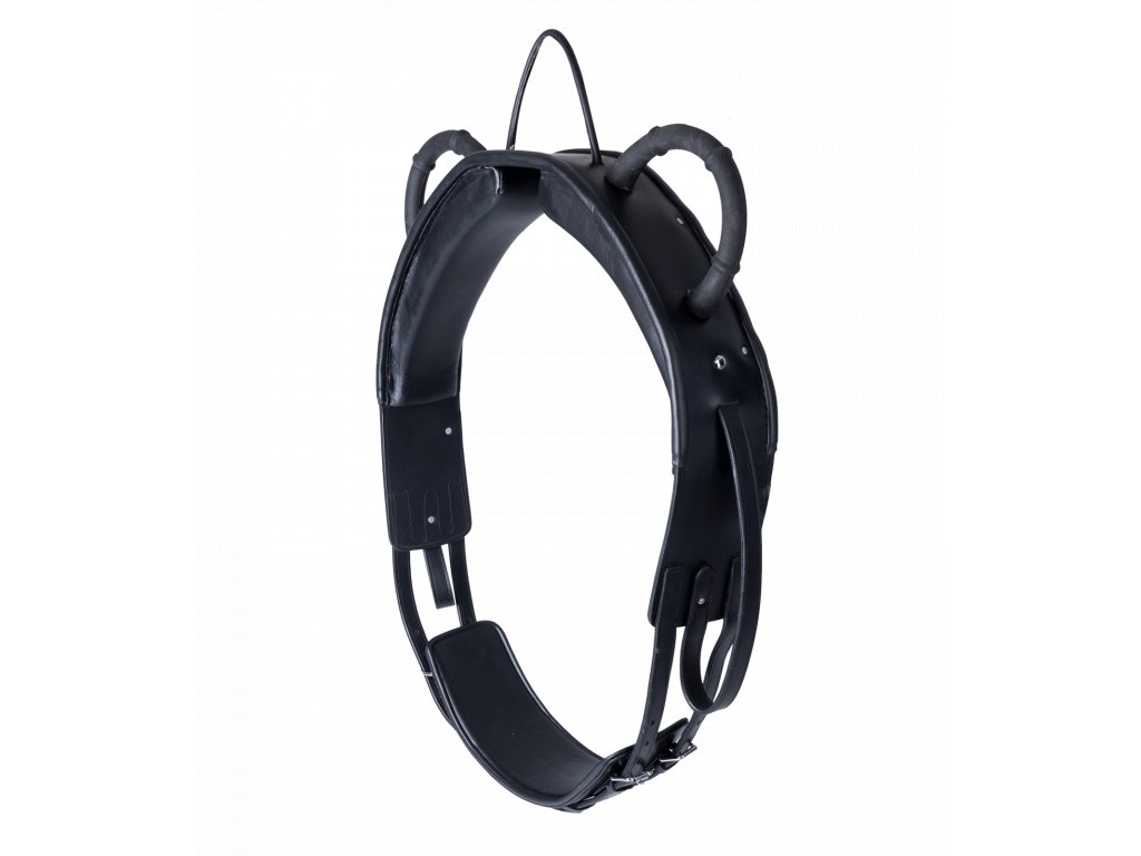 Kožená voltižní madla s poutky. Zapínání podbřišníku na obou stranách. Nastavitená délka 197 - 240 cm.