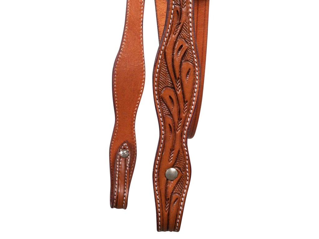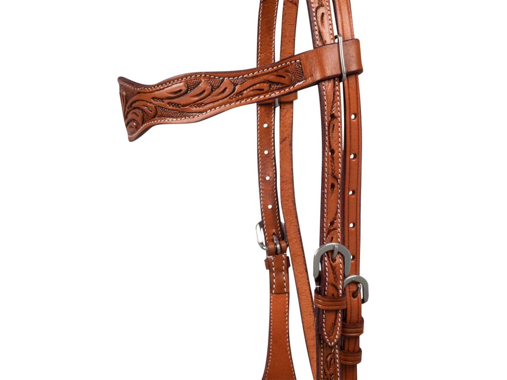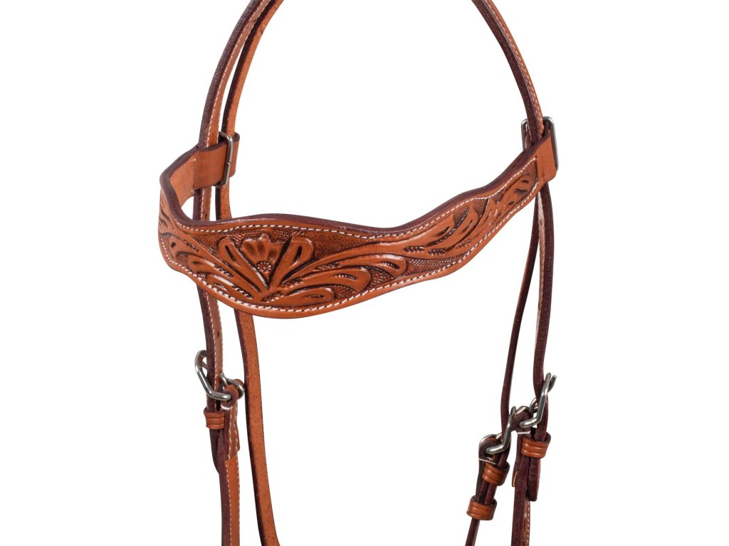 Kvalitní kožená westernová uzdečka s jemným vytlačovaným dekorem květů. Barva kůže chestnut (kaštanová hnědá).