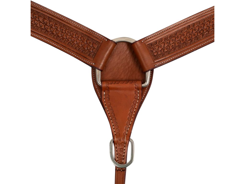Westernový poprsník z velmi kvalitní kůže s jemným tlačeným vzorem basket a kvítků. Barva chestnut, velikost jednotná - Full QH
