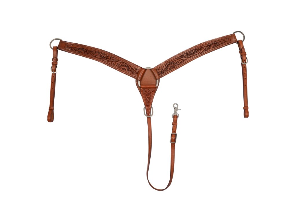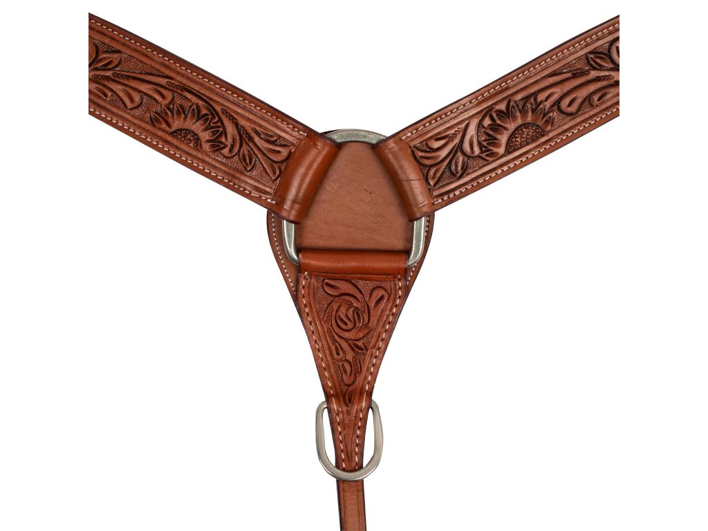 Westernový poprsník z velmi kvalitní kůže s jemným tlačeným vzorem květů. Barva chestnut, velikost jednotná - Full QH